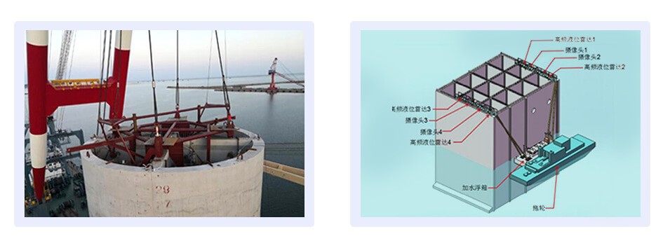 沉箱信息化无人安装系统可以实现完成高大沉箱安装无人加水控制、监测,实现完成高大圆沉箱安装自动挂钩、摘钩吊具设计。